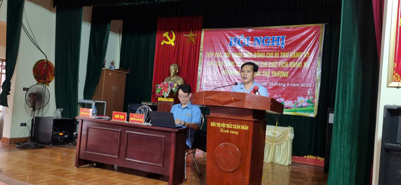 Sáng ngày 25 tháng 9 năm 2025, tại Nhà Văn hóa thôn Thọ Trương, xã Bắc Thanh Miện đã diễn ra Hội nghị tiếp xúc, đối thoại giữa đồng chí Nguyễn Anh Tuấn – Bí thư Đảng ủy, Chủ tịch HĐND xã; đồng chí Khổng Quốc Toản – Phó Bí thư, Chủ tịch UBND xã với Nhân dân thôn Thọ Trương.